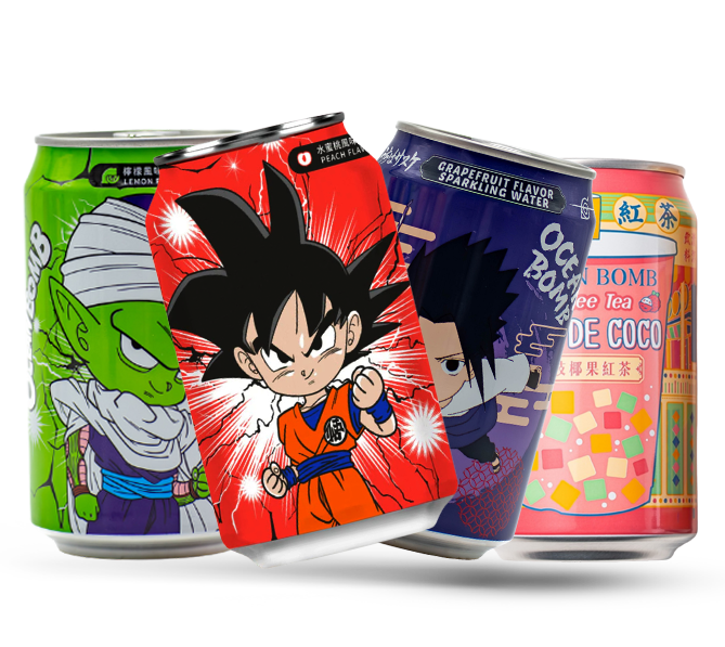 Explore the exciting range of Ocean Bomb drinks now available on the SnacKing website! From Dragon Ball Z flavoured sparkling water to Naruto, Attack on Titan Eren, and Sailor Moon character-themed sparkling water and delicious Ocean Bomb bubble teas, there's a flavour for every anime fan and drink lover. Dive into your favourite characters and flavours today, and let the adventure begin!